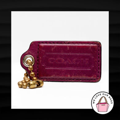 3" Large COACH PURPLE MAGENTA LEATHER BRASS KEY FOB BAG CHARM KEYCHAIN HANG TAG