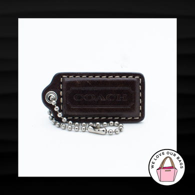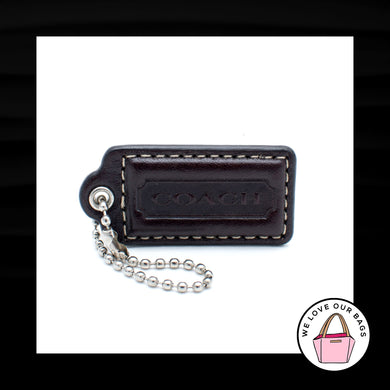 2.5" Large COACH Very DARK BROWN Leather Nickel Fob Bag Charm Keychain Hang Tag