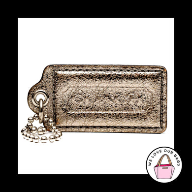 2" Medium COACH GOLD METALLIC Leather Nickel Key Fob Bag Charm Keychain Hang Tag