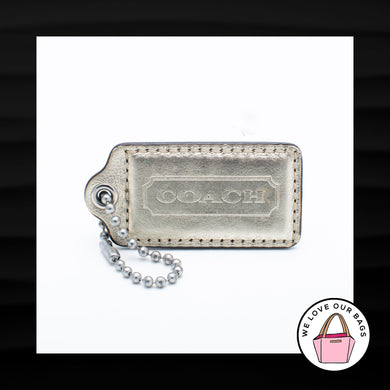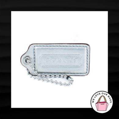 2.5" Large COACH SILVER METALLIC LEATHER NICKEL FOB BAG CHARM KEYCHAIN HANGTAG