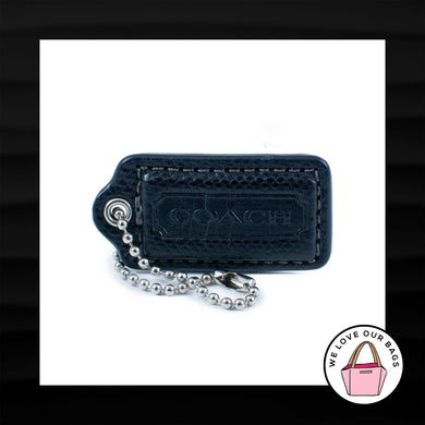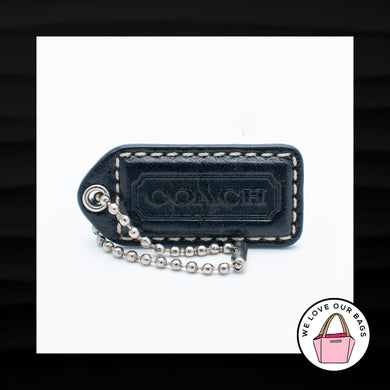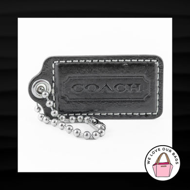 2" Medium COACH BLACK LEATHER NICKEL KEY FOB BAG CHARM KEYCHAIN HANGTAG TAG