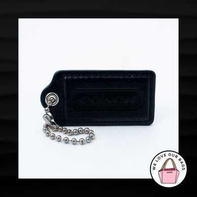 2.5" Large COACH BLACK PATENT LEATHER NICKEL KEY FOB BAG CHARM KEYCHAIN HANG TAG