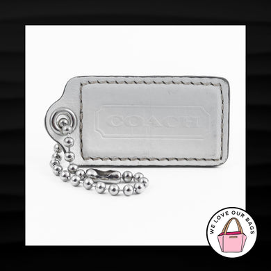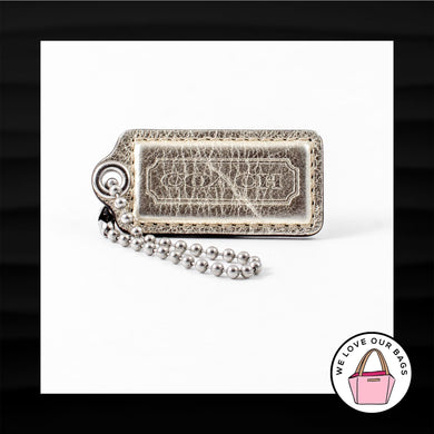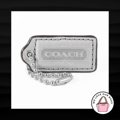 2.5" Large COACH METALLIC SILVER LEATHER KEY FOB BAG CHARM KEYCHAIN HANGTAG TAG