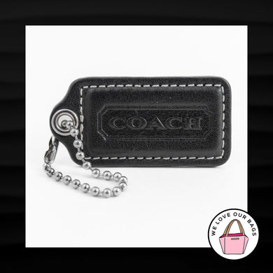 2.25" Medium COACH BLACK LEATHER NICKEL KEY FOB BAG CHARM KEYCHAIN HANGTAG TAG