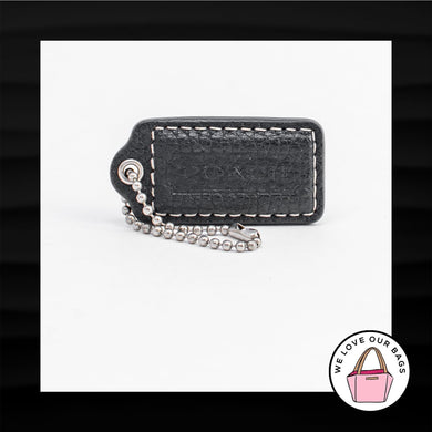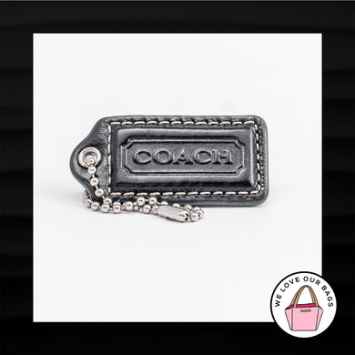 2.5" Large COACH BLACK LEATHER SILVER KEY FOB BAG CHARM KEYCHAIN HANG TAG