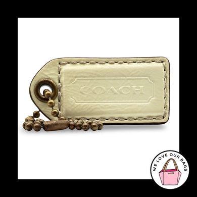 2.5" Large Y2K VINTAGE COACH White Leather Brass Fob Bag Charm Keychain Hang Tag