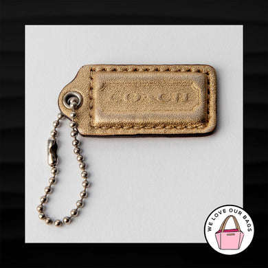 2" Medium COACH GOLD METALLIC LEATHER KEY FOB BAG CHARM KEYCHAIN HANGTAG TAG