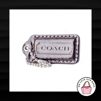 2" Medium COACH BLACK SILVER PATENT LEATHER KEY FOB BAG CHARM KEYCHAIN HANGTAG TAG