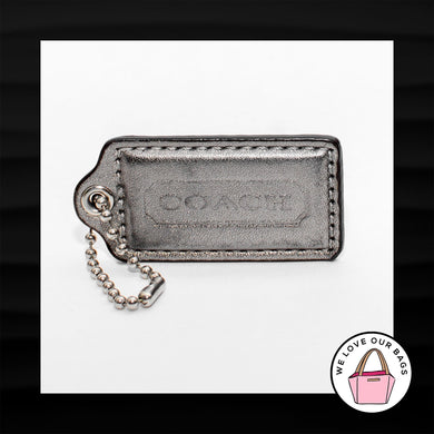 2.5" Large COACH SILVER METALLIC LEATHER KEY FOB BAG CHARM KEYCHAIN HANGTAG TAG