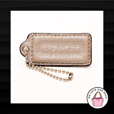 2.5" Large COACH GRAY SHIMMER LEATHER KEY FOB BAG CHARM KEYCHAIN HANGTAG TAG
