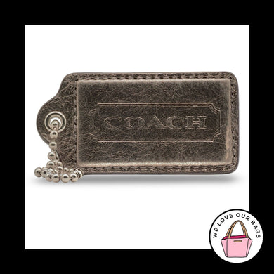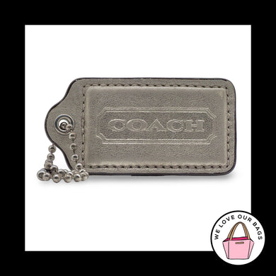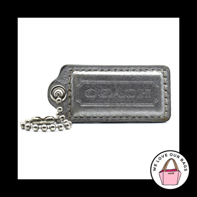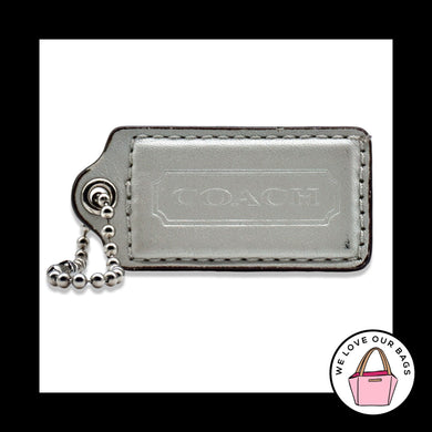 2.5" Large COACH Silver Metallic Leather Nickel Fob Bag Charm Keychain Hang Tag