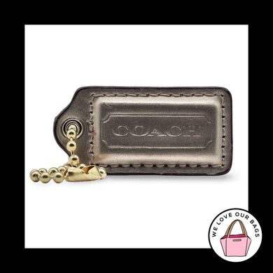 RARE 3" XL COACH Light Gold Metallic Leather Key Fob Bag Charm Keychain Hang Tag