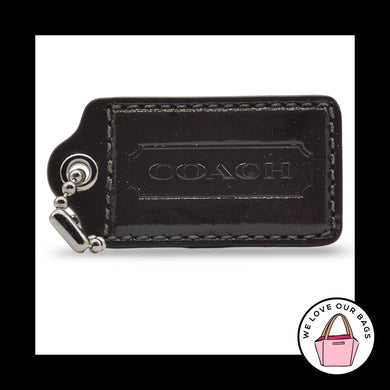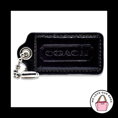 2.5" Large COACH Black Patent Leather Nickel Key Fob Bag Charm Keychain Hang Tag