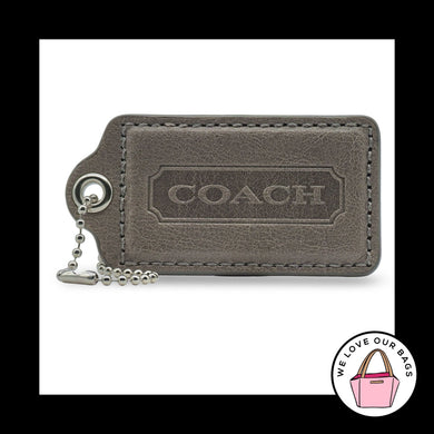 RARE 3" XL COACH Gray Smooth Leather Nickel Key Fob Bag Charm Keychain Hang Tag