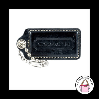 2.5" Large COACH BLACK Leather Nickel Key Fob Bag Charm Keychain Hang Tag