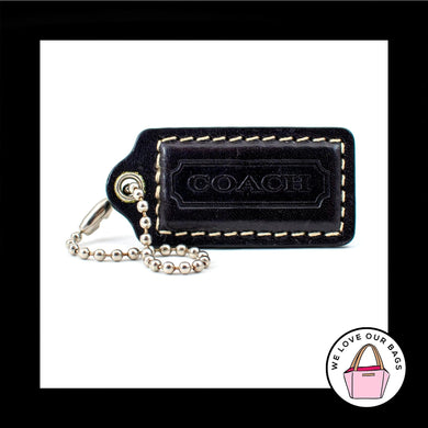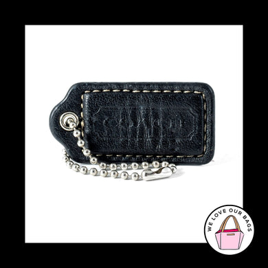 2" Medium COACH Black Leather Nickel Key Fob Bag Charm Keychain Hang Tag