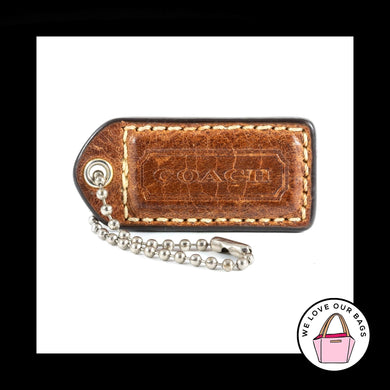 2" Medium COACH Walnut Brown LEATHER Nickel Key Fob Bag Charm Keychain Hang Tag