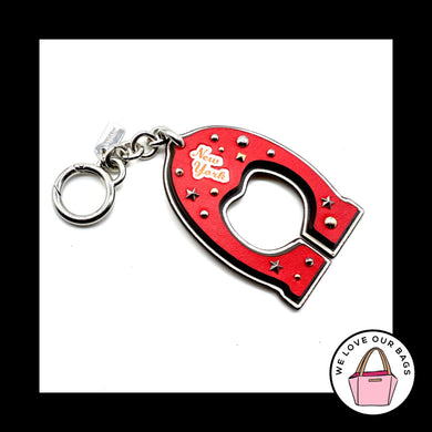 New $80 COACH New York VARSITY C Leather Fob Bag Charm Keychain Hang Tag 23585